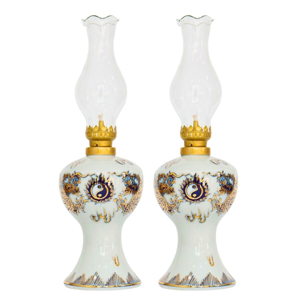 Đèn Dầu Thờ Bát Tràng Men Lam Vẽ Vàng Long Chầu Nguyệt 230181