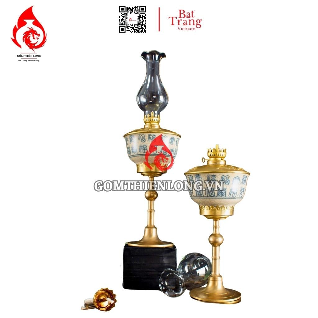 Thông tin sản phẩm Đèn Dầu Thờ Bát Tràng Men Rạn Thời Trần Vẽ Chữ 230205