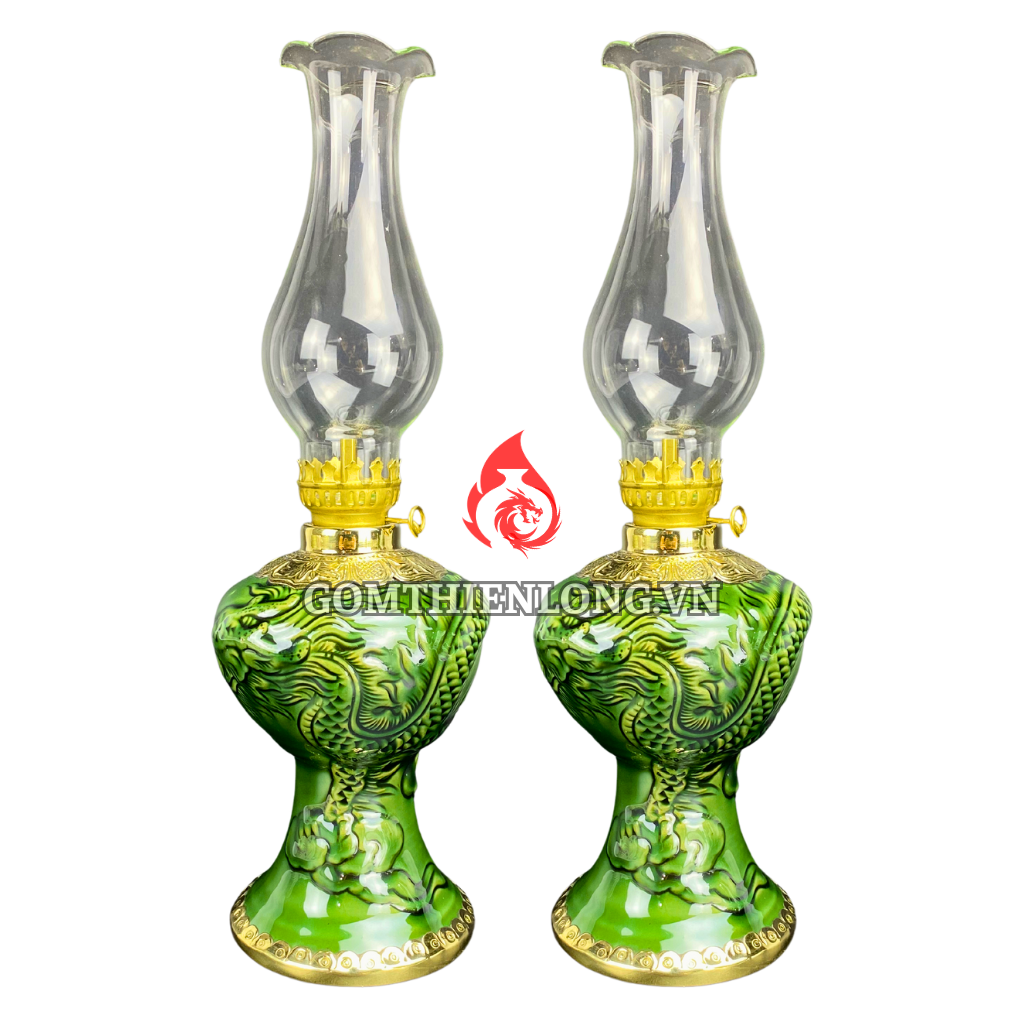 Đèn dầu thờ Bát Tràng men xanh ngọc lục bảo là một sản phẩm đồ thờ cúng làm từ chất liệu gốm Bát Tràng cao cấp, được nung ở nhiệt độ cao nên có độ bền cao, không bị nứt vỡ khi sử dụng. Đèn có màu xanh lục bảo, sắc cổ kính, trang nhã, với họa tiết Long vân. Đèn dầu Bát Tràng men xanh ngọc lục bảo được mệnh danh là ngọc trên gốm, thường được sử dụng để thắp hương trên bàn thờ gia tiên, bàn thờ phật, bàn thờ thần linh,... Đèn mang ý nghĩa thể hiện lòng thành kính của con cháu đối với thần linh, ông bà tổ tiên.