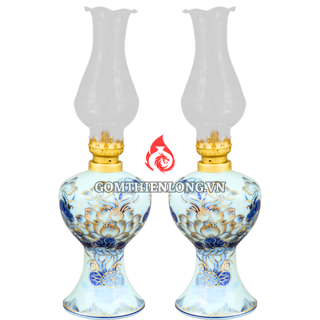 Đèn dầu thờ Bát Tràng men lam vẽ vàng hoa sen là một sản phẩm đồ thờ cúng làm từ chất liệu gốm Bát Tràng cao cấp, được nung ở nhiệt độ cao nên có độ bền cao, không bị nứt vỡ khi sử dụng. Đèn có màu xanh lam truyền thống, sắc cổ kính, trang nhã, với họa tiết hoa hoa sen vẽ vàng tinh tế. Đèn dầu Bát Tràng men lam vẽ vàng hoa sen thường được sử dụng để thắp hương trên bàn thờ gia tiên, bàn thờ phật, bàn thờ thần linh,... Đèn mang ý nghĩa thể hiện lòng thành kính của con cháu đối với thần linh, ông bà tổ tiên.
