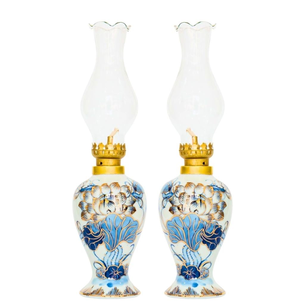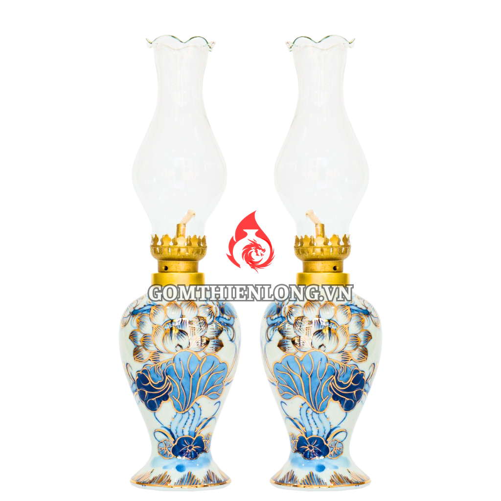Đèn dầu thờ Bát Tràng men lam vẽ vàng hoa sen là một sản phẩm đồ thờ cúng làm từ chất liệu gốm Bát Tràng cao cấp, được nung ở nhiệt độ cao nên có độ bền cao, không bị nứt vỡ khi sử dụng. Đèn có màu xanh lam truyền thống, sắc cổ kính, trang nhã, với họa tiết hoa hoa sen vẽ vàng tinh tế. Đèn dầu Bát Tràng men lam vẽ vàng hoa sen thường được sử dụng để thắp hương trên bàn thờ gia tiên, bàn thờ phật, bàn thờ thần linh,... Đèn mang ý nghĩa thể hiện lòng thành kính của con cháu đối với thần linh, ông bà tổ tiên.
