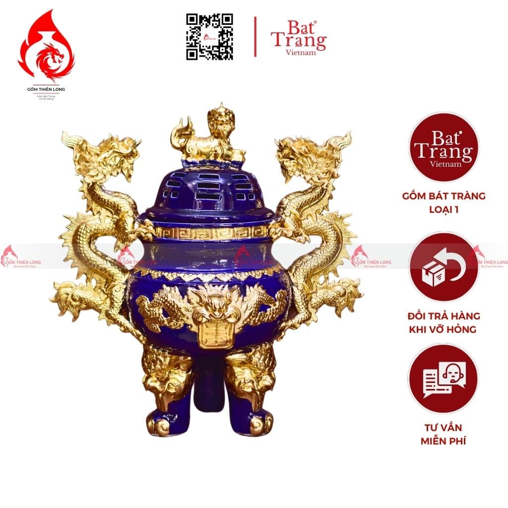 Cùng hơn 10 năm gầy dựng thương hiệu, gốm Thiên Long tự hào làm địa chỉ đáng tin cậy dành cho quý khách hàng. Nếu bạn đang tìm kiếm bộ đỉnh hạc gốm sứ cao cấp, tinh tế và có ý nghĩa phong thủy, tâm linh tốt thì bộ đỉnh hạc gốm sứ men xanh coban dát vàng Bát Tràng là một lựa chọn hoàn hảo dành cho bạn.