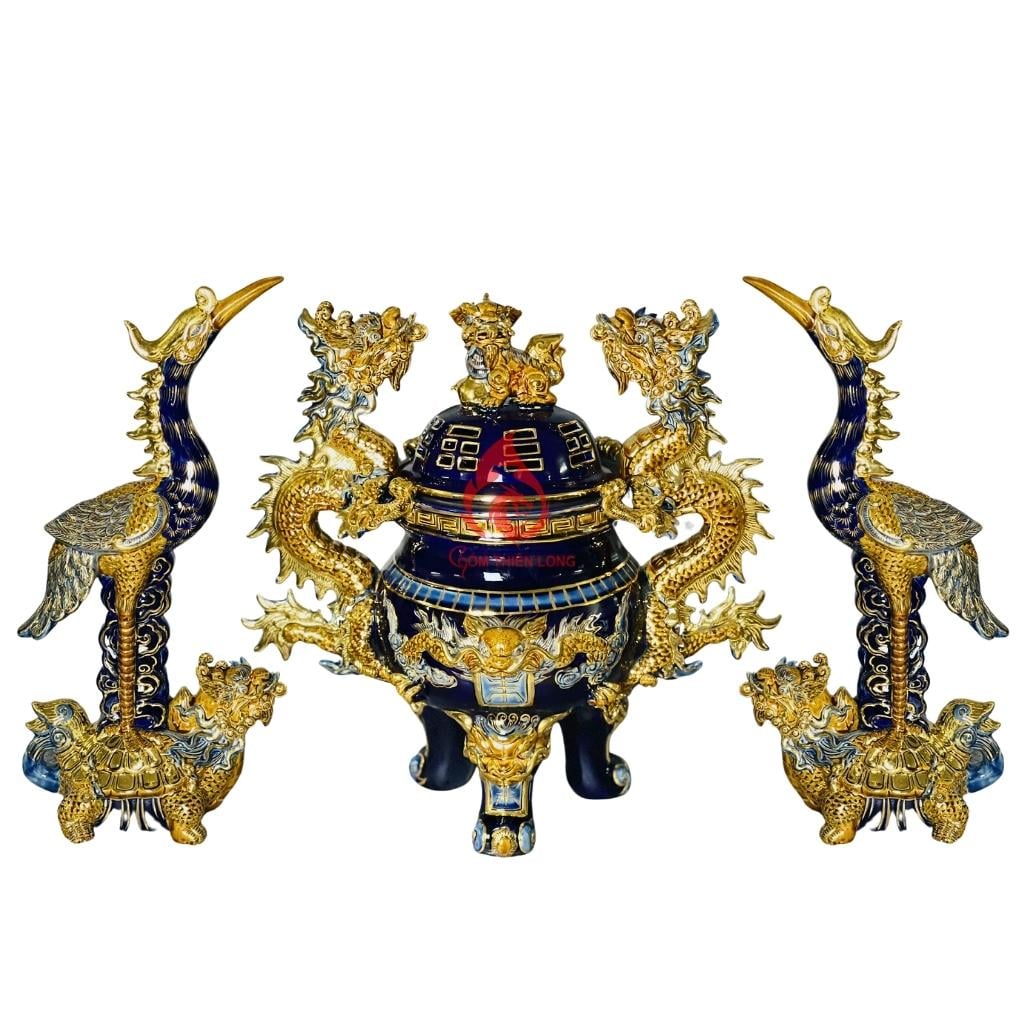 Nếu bạn đang tìm kiếm bộ đỉnh hạc gốm sứ cao cấp, tinh tế và có ý nghĩa phong thủy, tâm linh tốt thì bộ đỉnh hạc gốm sứ men xanh coban vẽ vàng Bát Tràng là một lựa chọn hoàn hảo dành cho bạn.
