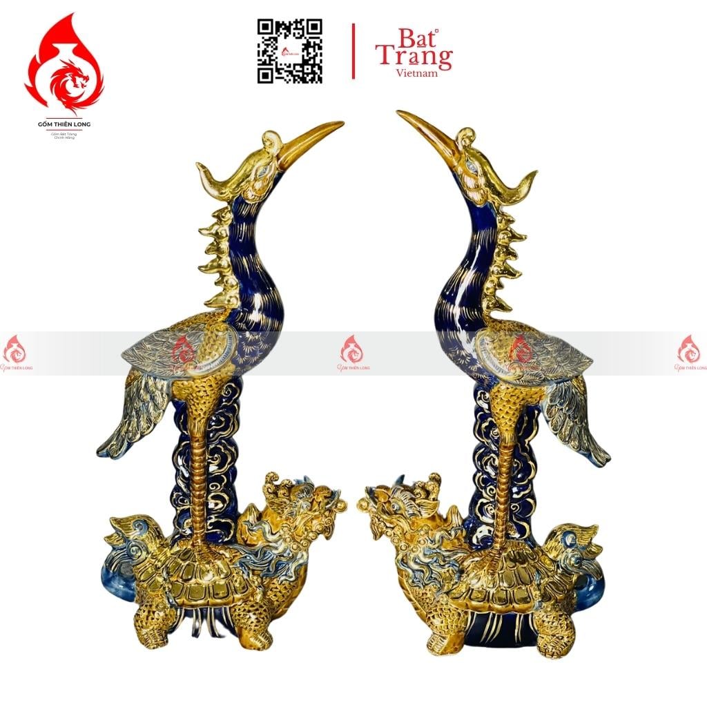 Ý nghĩa phong thủy của bộ đỉnh hạc gốm sứ men xanh coban vẽ vàng Bát Tràng: