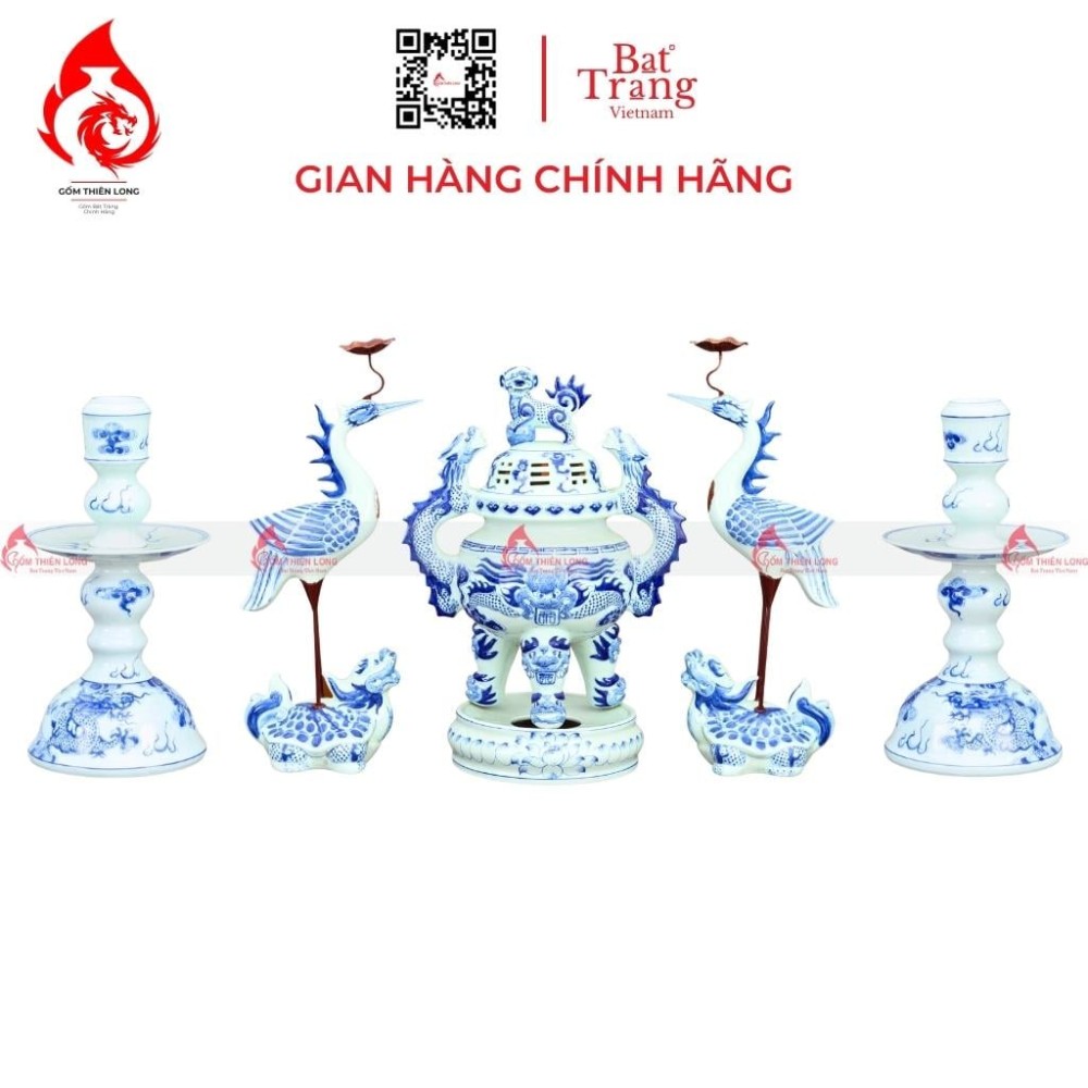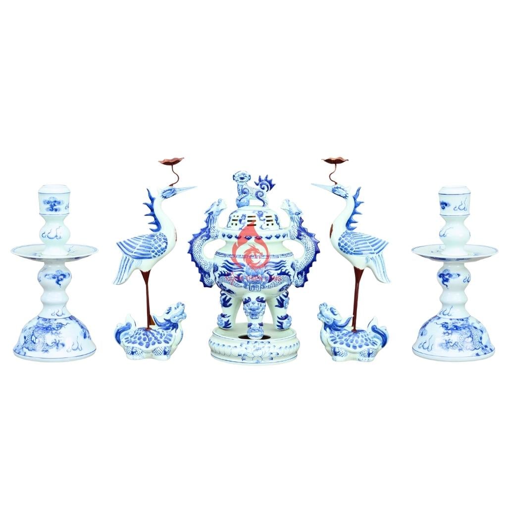 Bộ đỉnh hạc sứ men Lam cao 45 cm - gốm sứ Bát Tràng gồm những vật phẩm nào?