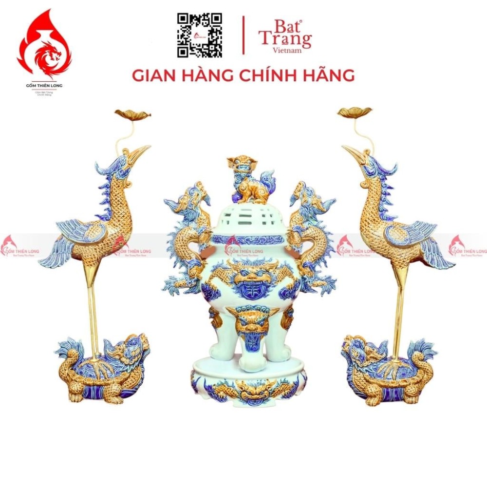 Ngoài ra với các chi tiết hoa văn đắp nổi kỷ lân, rồng, kim quy, hạc đều mang đến ý nghĩa phong thủy sâu sắc. Khi đặt bộ sản phẩm trên bàn thờ giúp hóa giải hung khí, thu hút tài lộc, sự nghiệp công danh luôn được hanh thông.