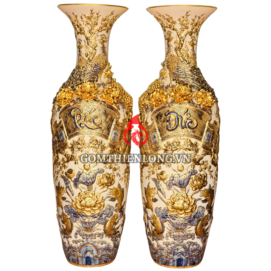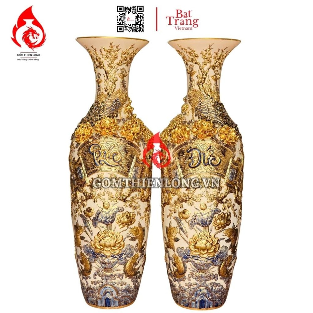 Giá trị phong thuỷ của lộc bình Bát Tràng vẽ vàng đắp nổi phúc đức 230124