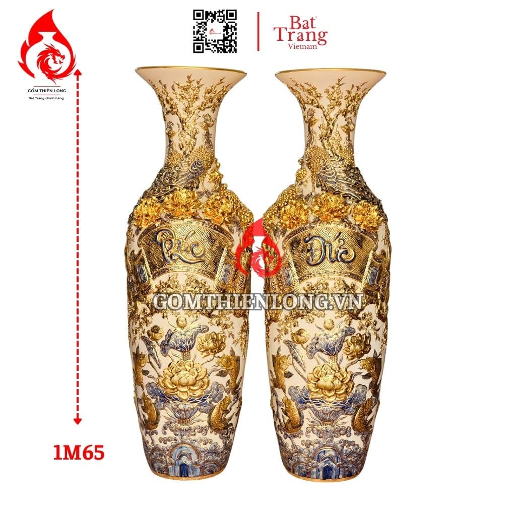 Lộc bình Bát Tràng vẽ vàng đắp nổi phúc đức 230124 là sản phẩm gốm sứ cao cấp, chỉ có các cơ sở chế tác lâu năm uy tín ở thị trường mới có thể làm ra được. Nếu quý khách còn đang băn khoăn chưa tìm được địa chỉ mua lộc bình ưng ý hãy tham khảo gốm Thiên Long.