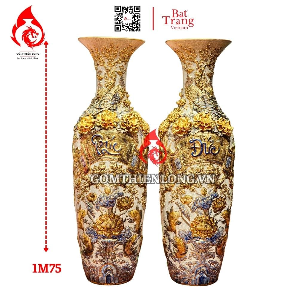 Lộc bình Bát Tràng vẽ vàng đắp nổi phúc đức