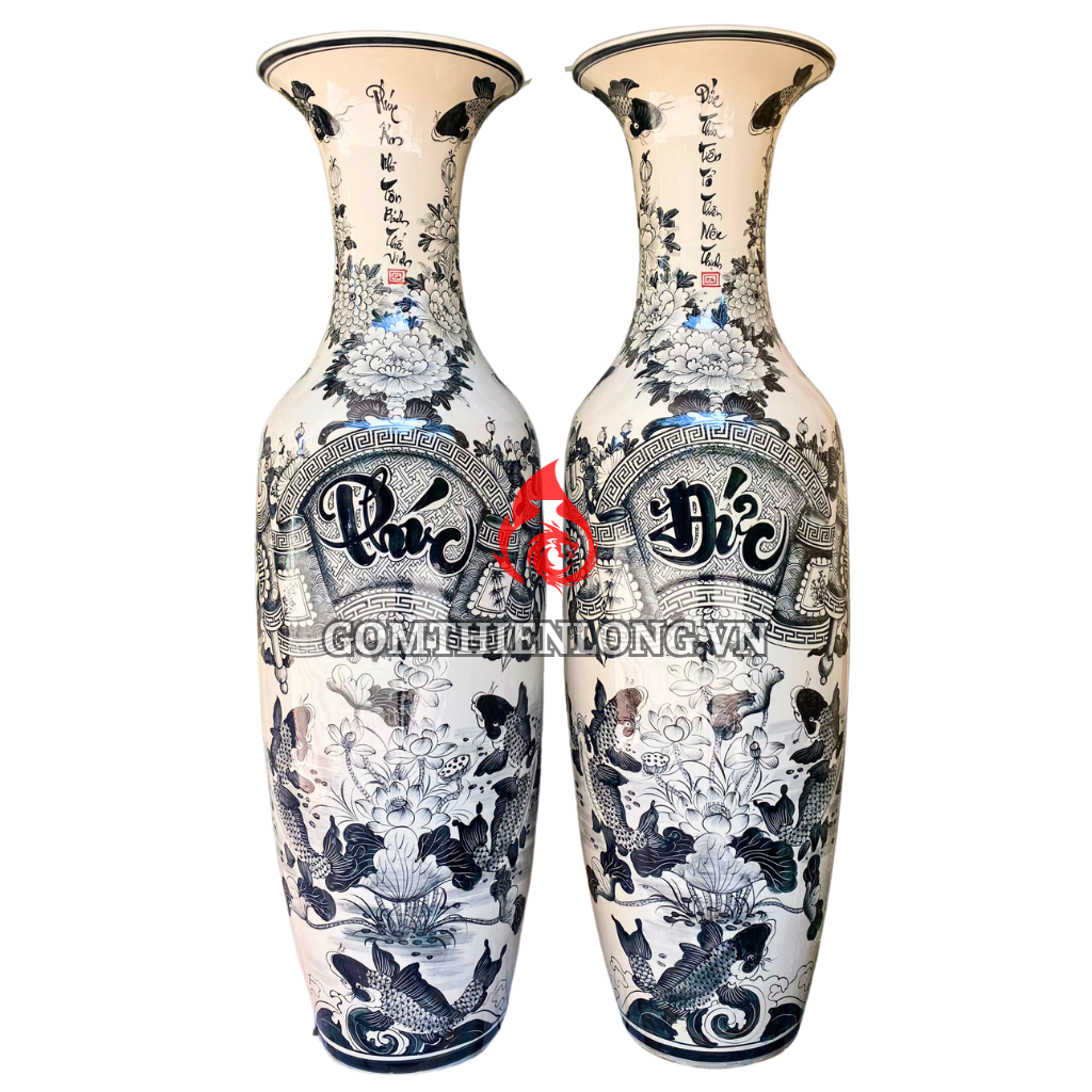 Lộc bình vẽ tay phúc đức cuốn thư Bát Tràng - vật phẩm phong thuỷ sang trọng và giàu ý nghĩa