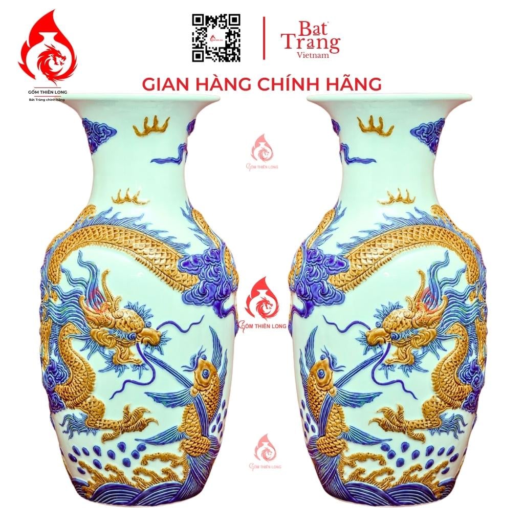 Đặt lộc bình men ngọc đắp nổi Bát Tràng Thiên Long - chuẩn phong thủy