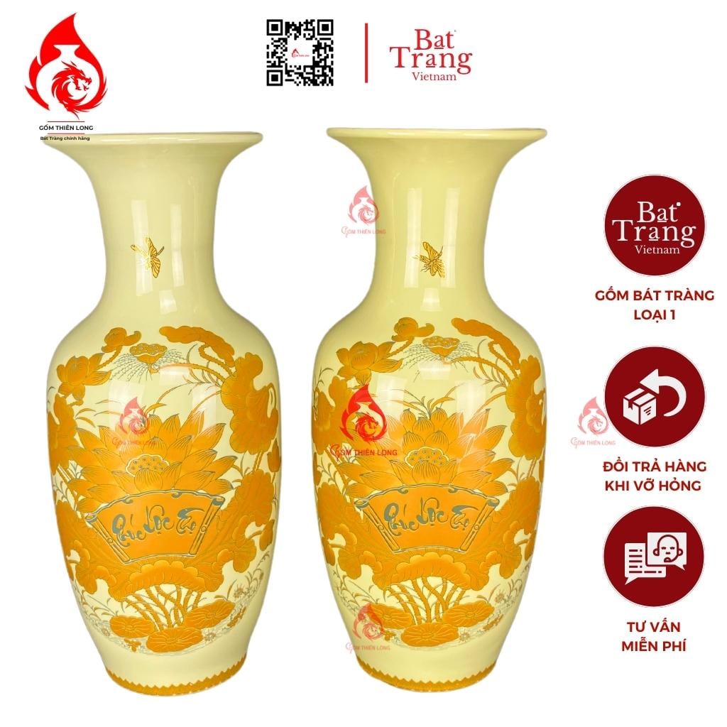 Thông tin sản phẩm Lộc Bình Bát Tràng Men Vàng Sen Phúc Lộc Thọ 231001