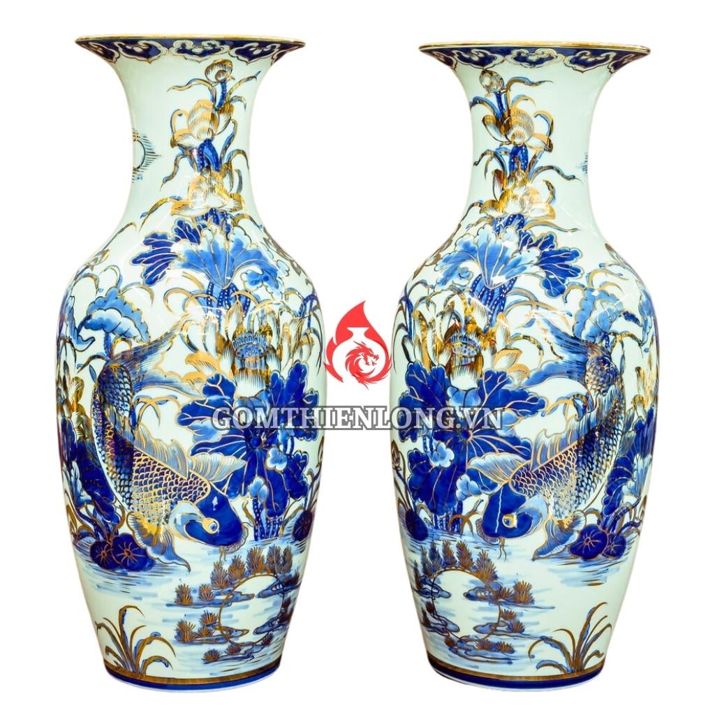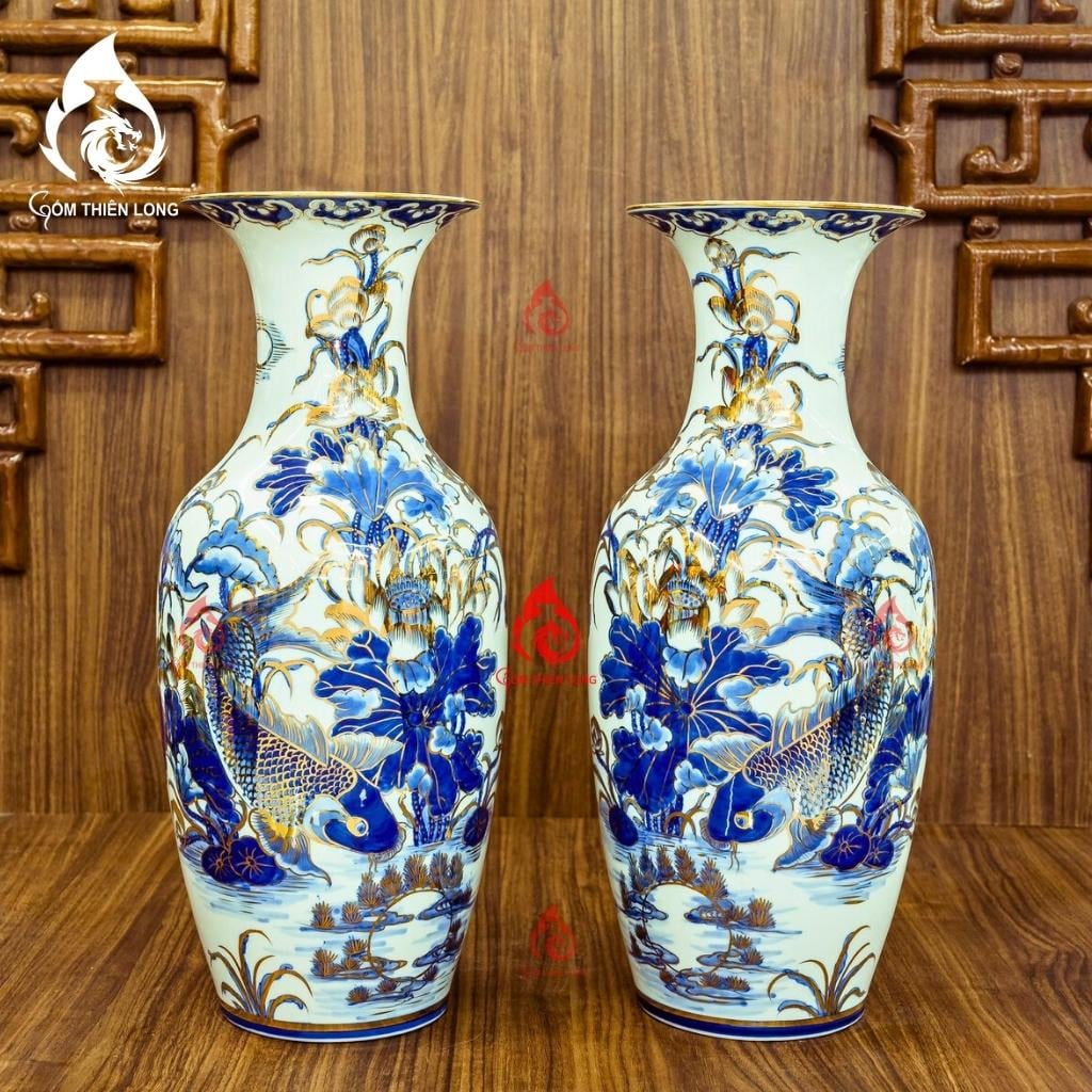 Để chọn được một cặp lục bình sứ để bàn thờ men lam vẽ vàng cá chép hoa sen Bát Tràng đẹp và phù hợp, cần lưu ý một số điểm sau: