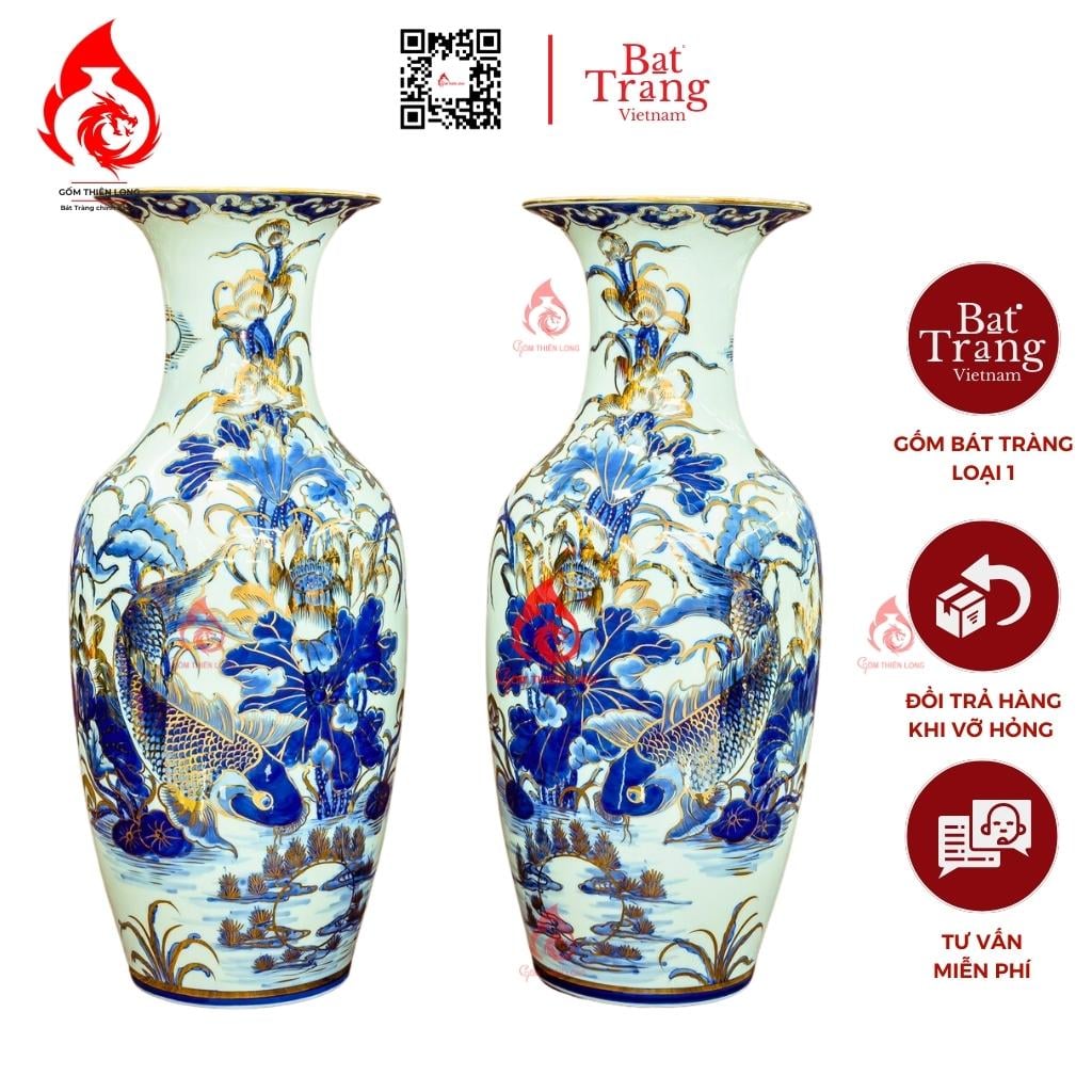 Lộc bình Bát Tràng để bàn thờ men lam vẽ vàng cá chép hoa sen là một món đồ thờ cúng trang trọng, mang ý nghĩa phong thủy tốt lành. Việc chọn lựa và bày trí lục bình đúng cách sẽ giúp gia đình gặp nhiều may mắn, bình an và thịnh vượng.