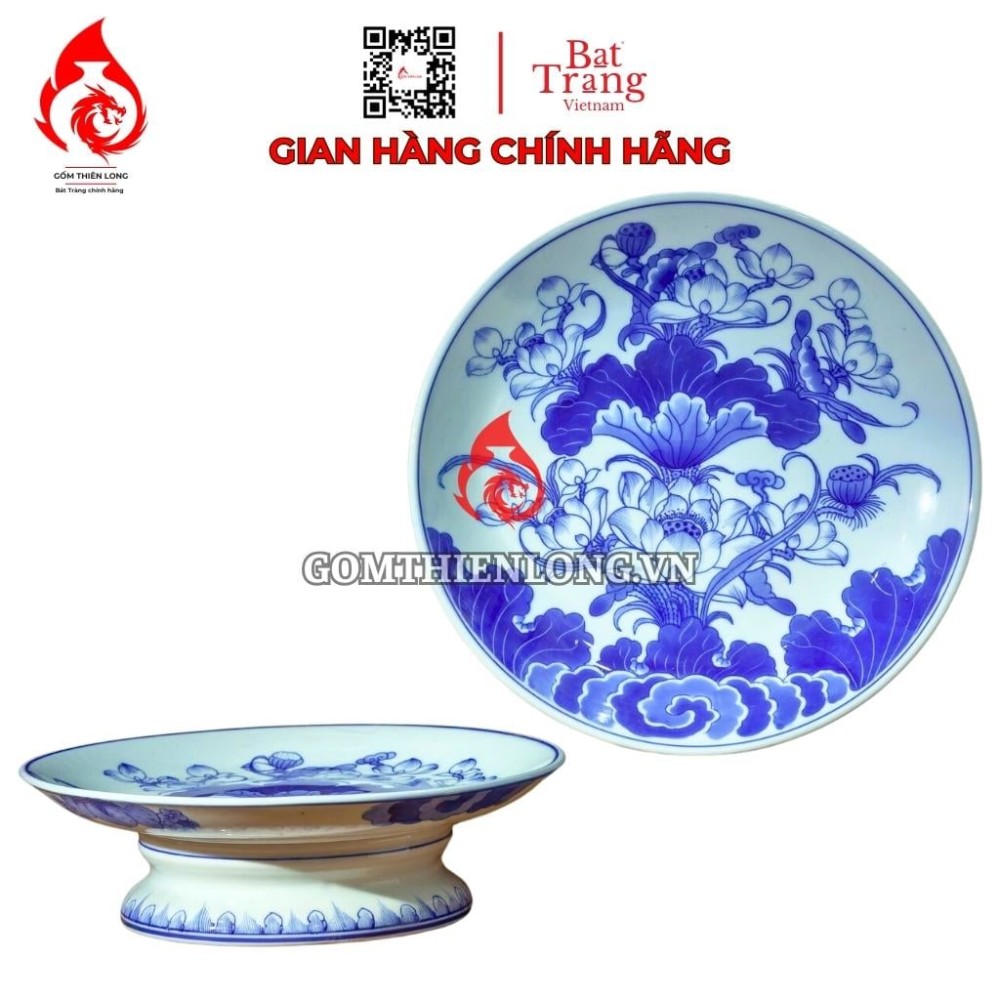 Thông tin sản phẩm Mâm Bồng Sứ Bát Tràng Men Lam Vẽ Hoa Sen 231107