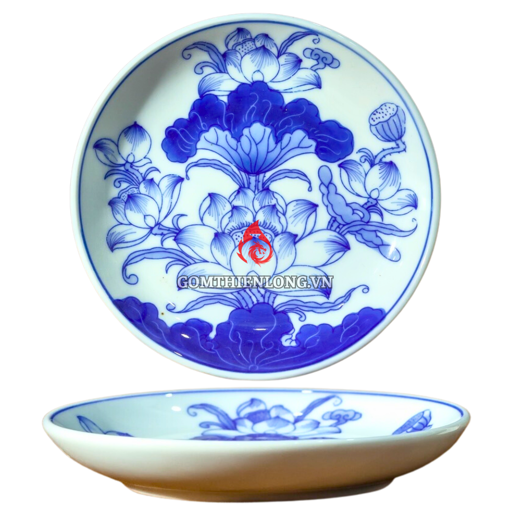 Mâm Bồng Sứ Bát Tràng Men Lam Vẽ Hoa Sen 231108