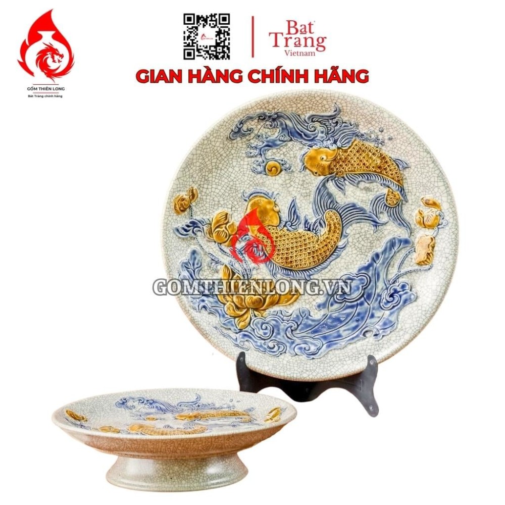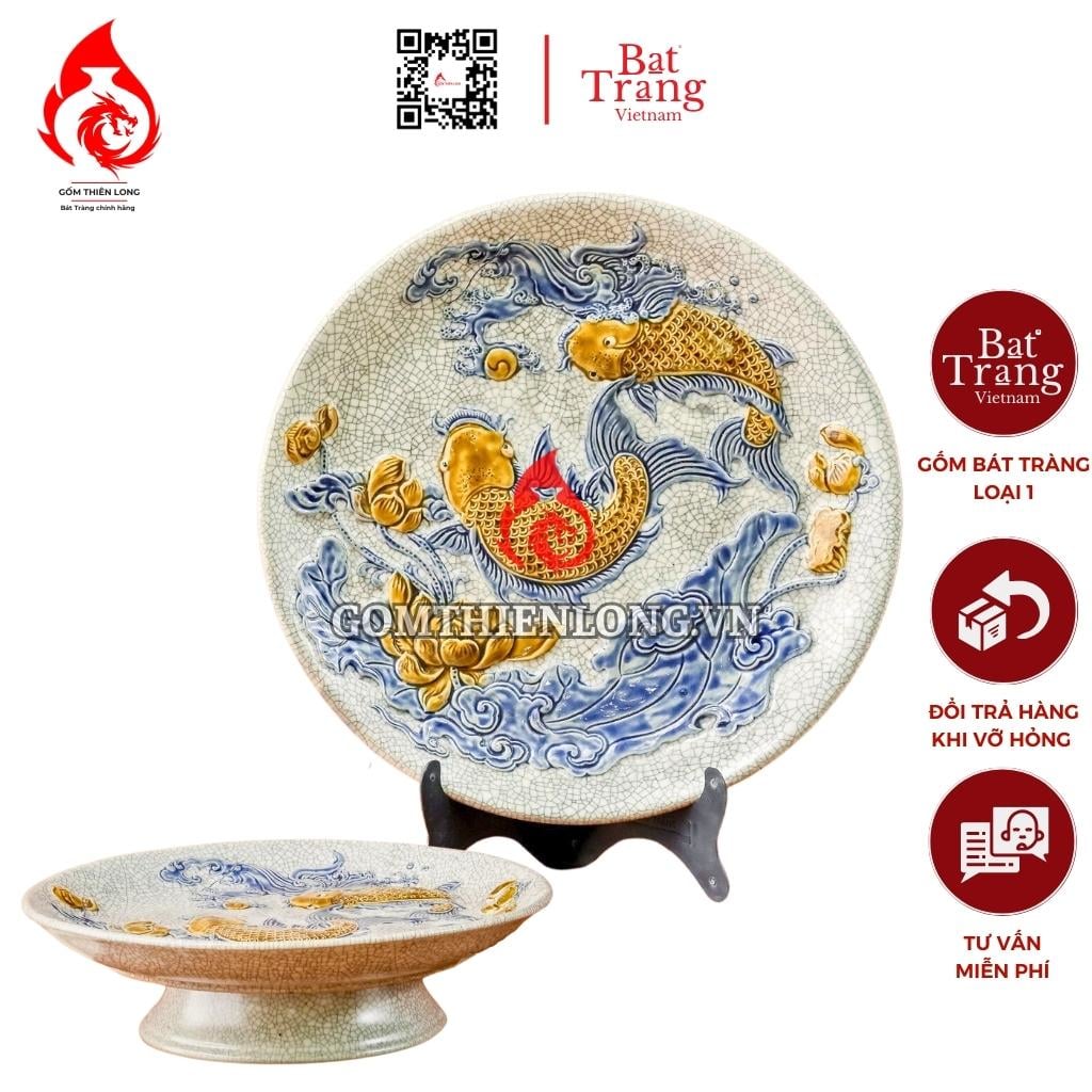 Thông tin sản phẩm Mâm Bồng Sứ Bát Tràng Men Rạn Đắp Nổi Sen Cá 231116