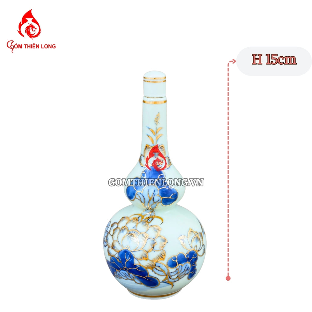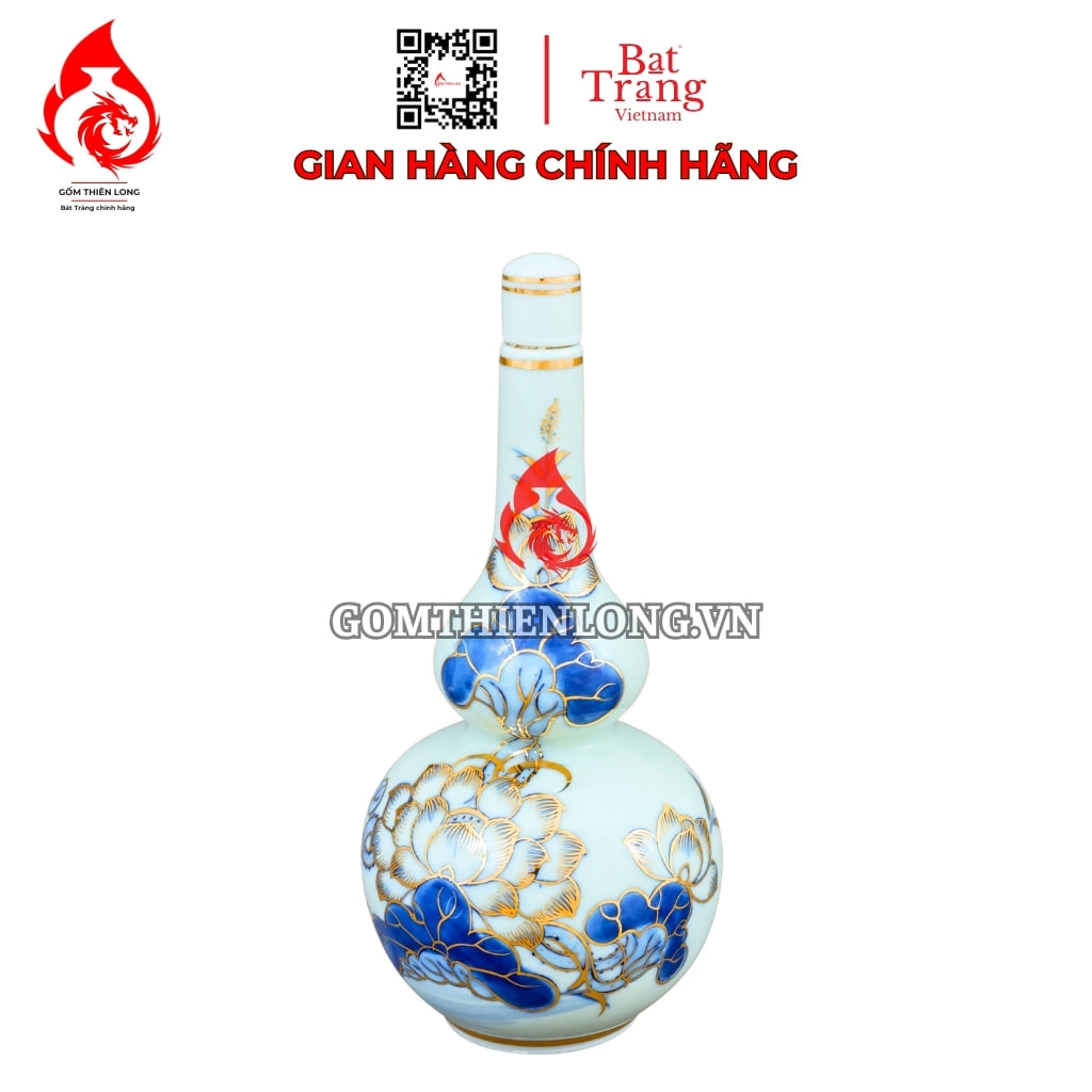 Thông tin sản phẩm Nậm Rượu Thờ Bát Tràng Men Lam Vẽ Vàng Hoa Sen 240125