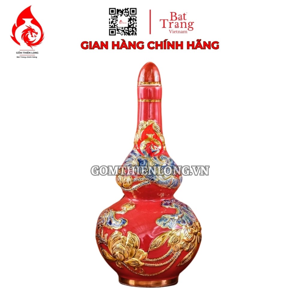 Men màu đỏ vẽ vàng hoa sen: Nậm rượu được phủ men màu đỏ vẽ vàng hoa sen, mang vẻ đẹp sang trọng và tinh tế. Các sản phẩm sau khi trải qua 2 lần nung đến nhiệt độ 1200 độ C hoàn hảo nhất sẽ được người nghệ nhân lựa chọn vẽ vàng 24k lên sản phẩm và tiếp tục nung lần thứ 3 vô cùng công phu.