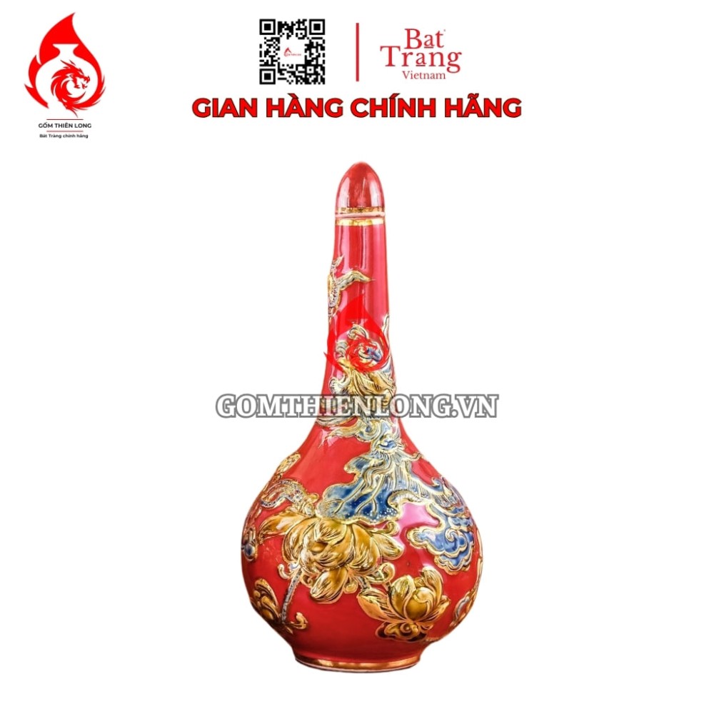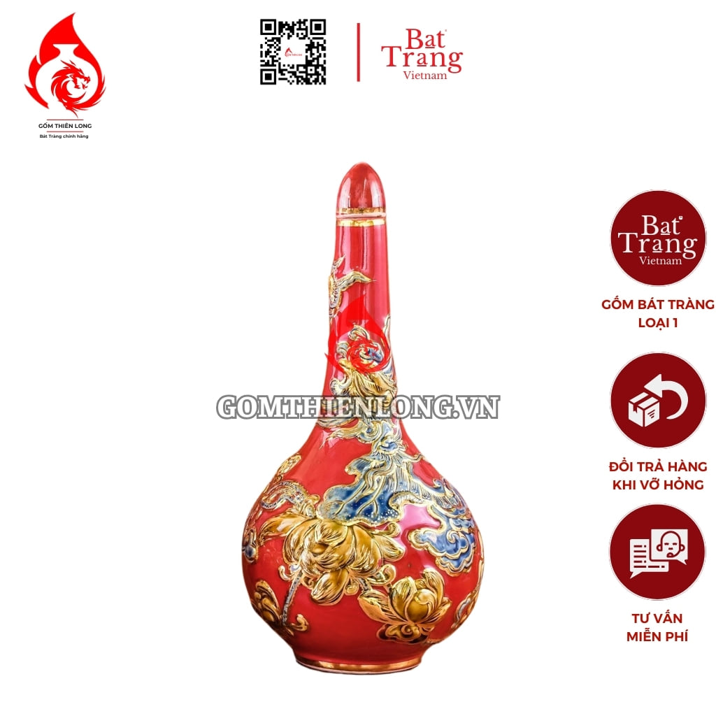 Thông tin sản phẩm Nậm Rượu Thờ Bát Tràng Men Màu Đỏ Vẽ Vàng 240150