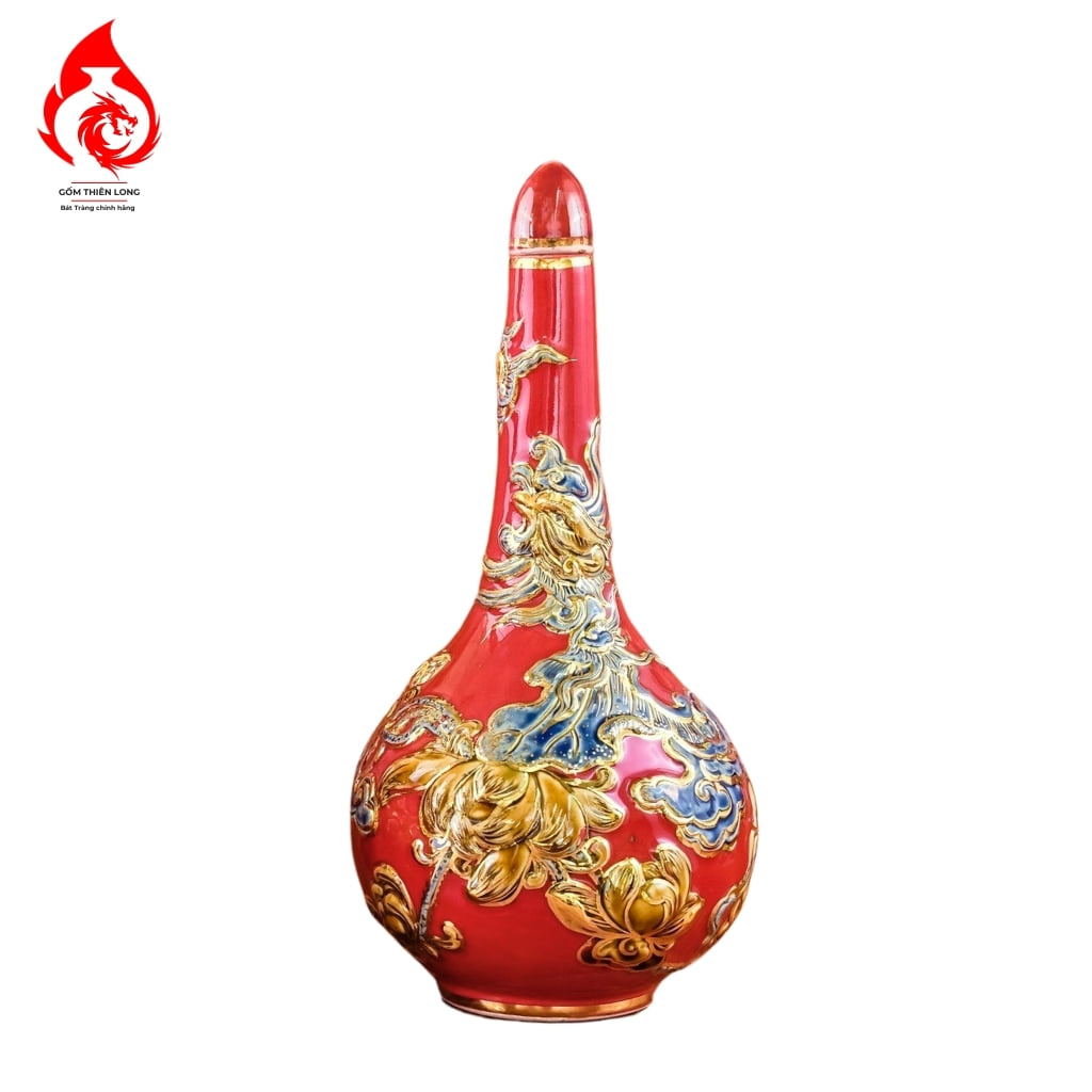 Nậm rượu thờ Bát Tràng men màu đỏ vẽ vàng hoa sen là một vật phẩm thờ cúng đẹp mắt và ý nghĩa. Nậm rượu sẽ góp phần tạo nên một không gian thờ cúng trang nghiêm và linh thiêng cho gia đình bạn.