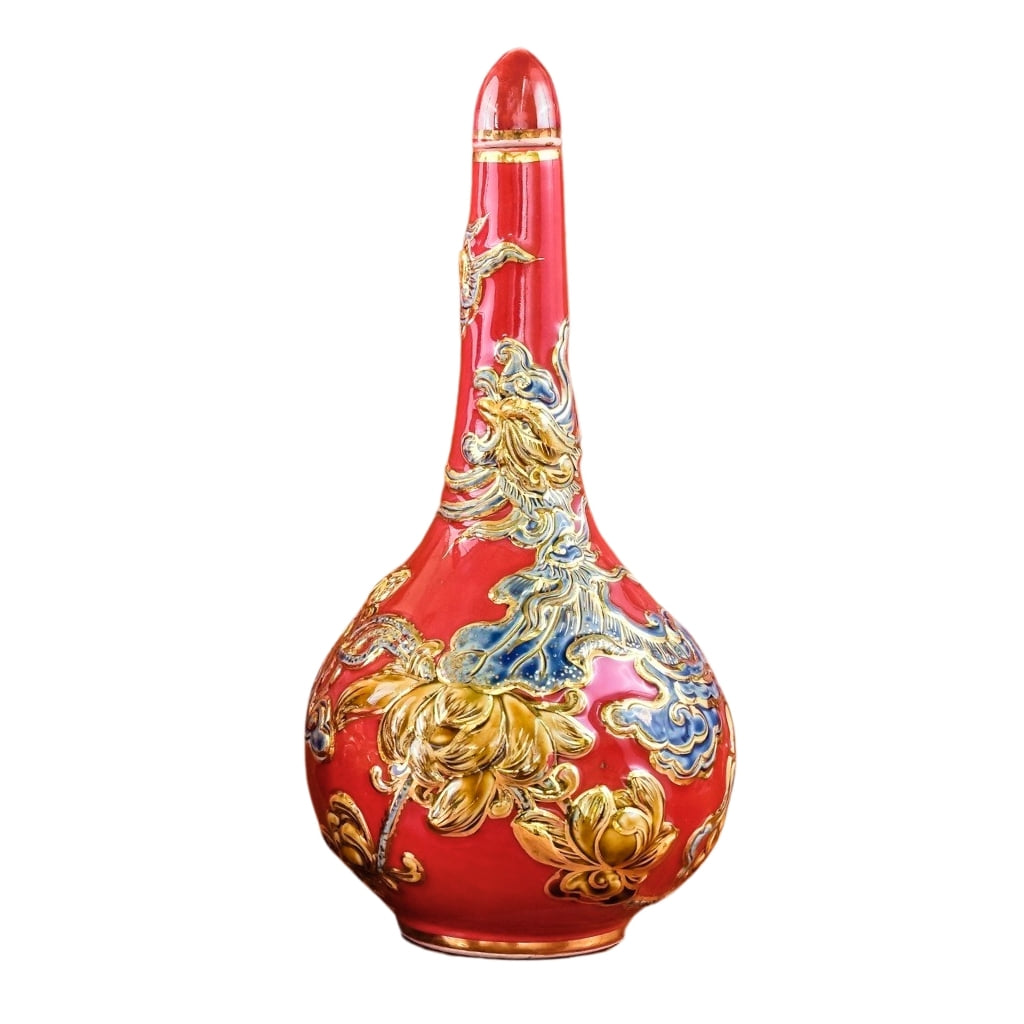 Nậm Rượu Thờ Bát Tràng Men Màu Đỏ Vẽ Vàng 240150