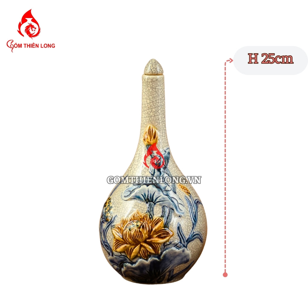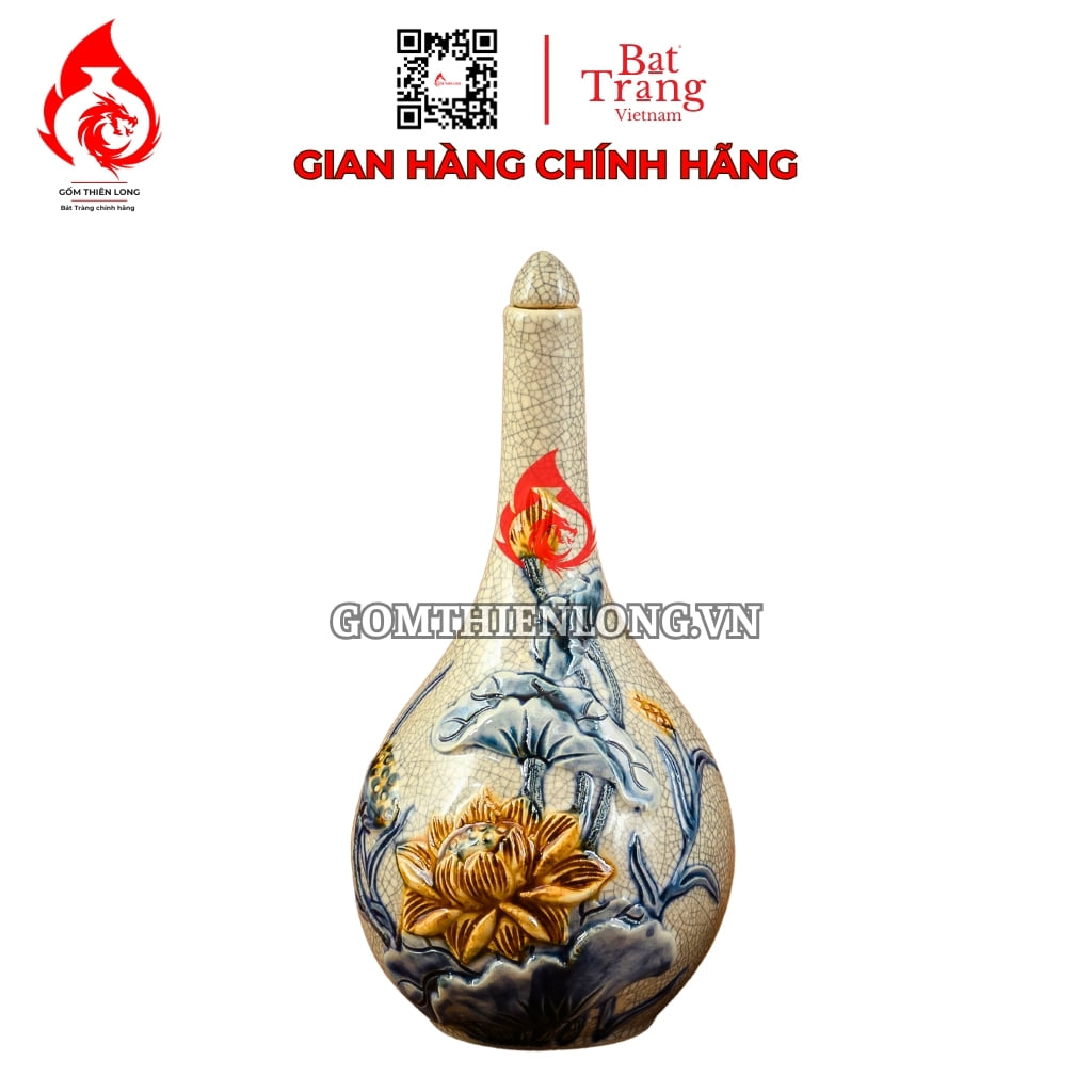 Thông tin sản phẩm Nậm Rượu Thờ Bát Tràng Men Rạn Đắp Nổi Hoa Sen 240129