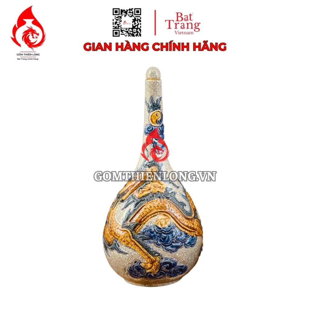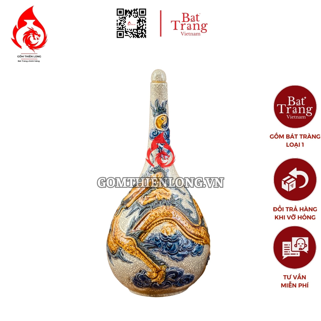 Thông tin sản phẩm Nậm Rượu Thờ Bát Tràng Men Rạn Đắp Nổi Rồng 240131