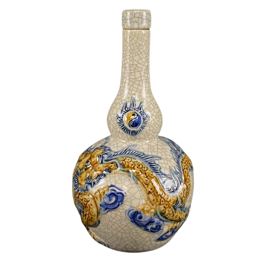 Nậm Rượu Thờ Bát Tràng Men Rạn Đắp Nổi Rồng 240132