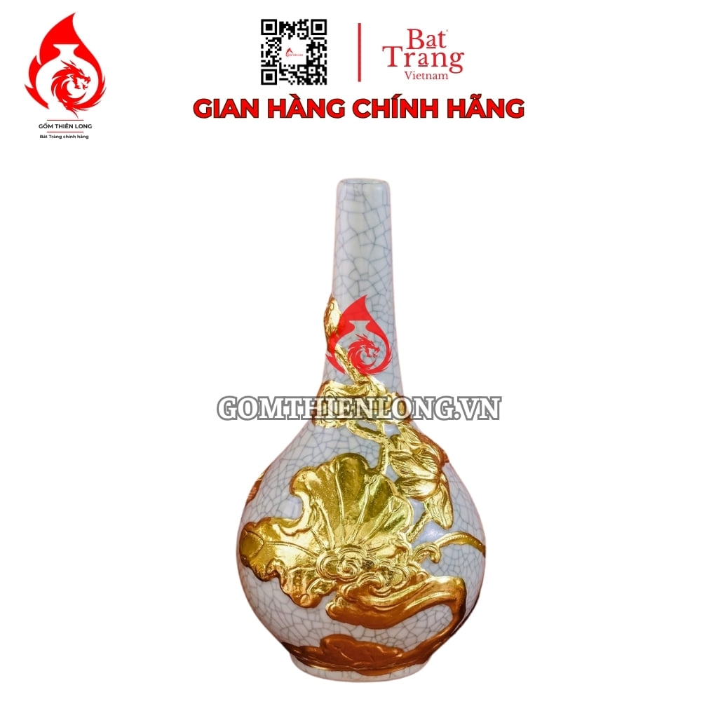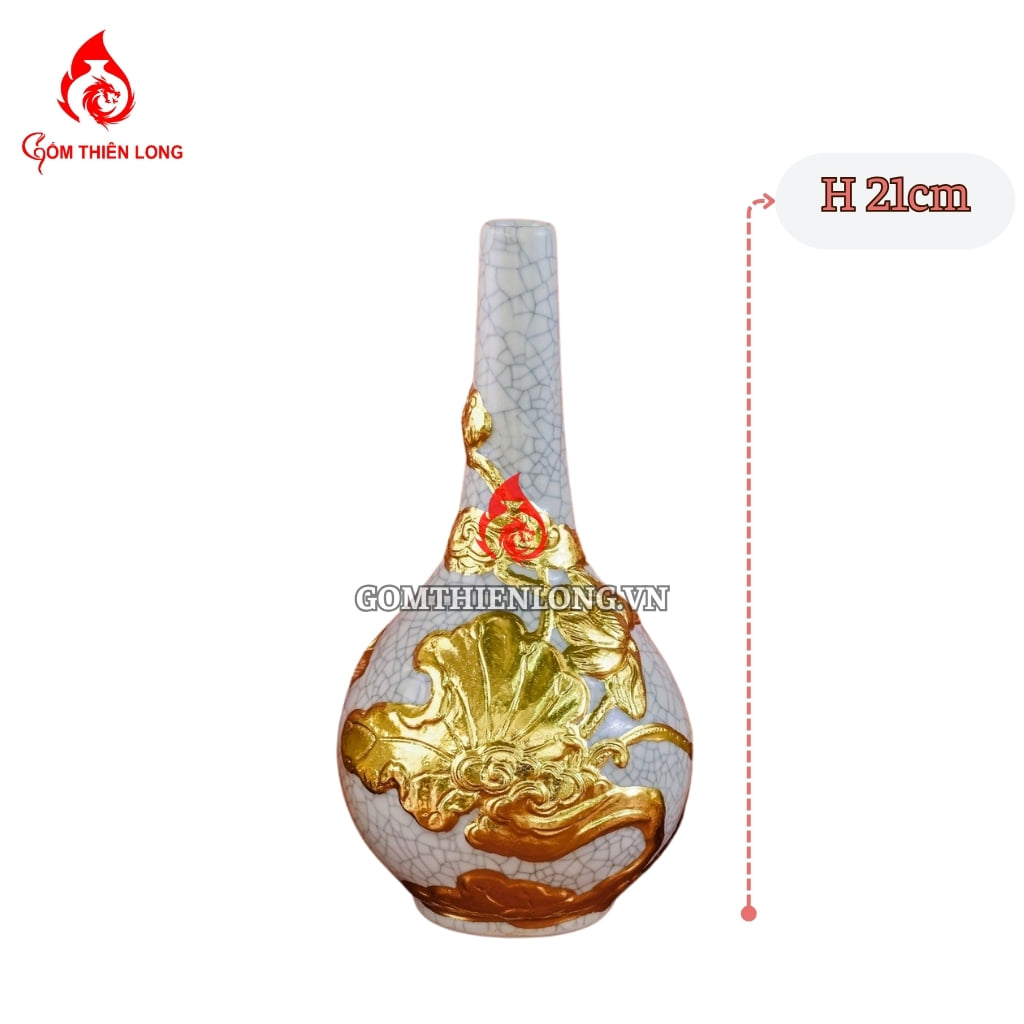 Nậm Rượu Thờ Bát Tràng Men Rạn Dát Vàng Hoa Sen 240146