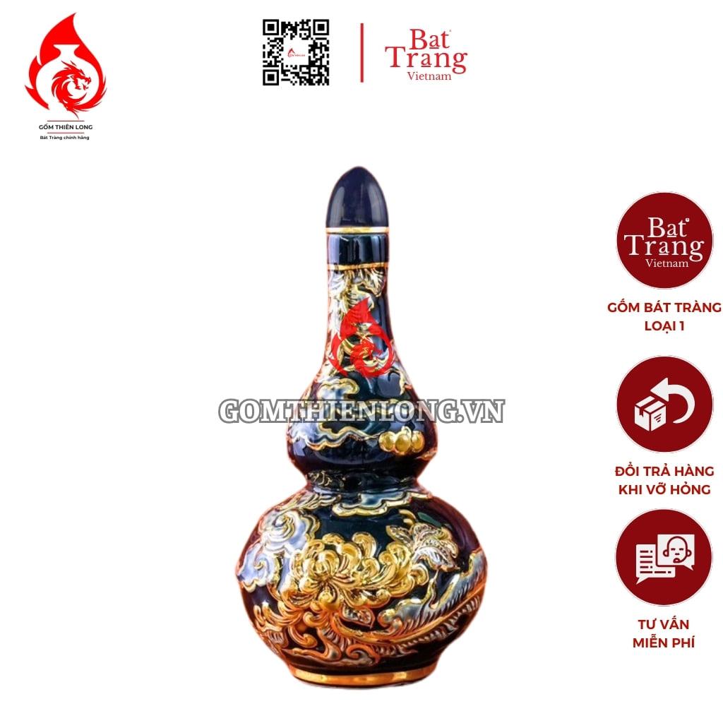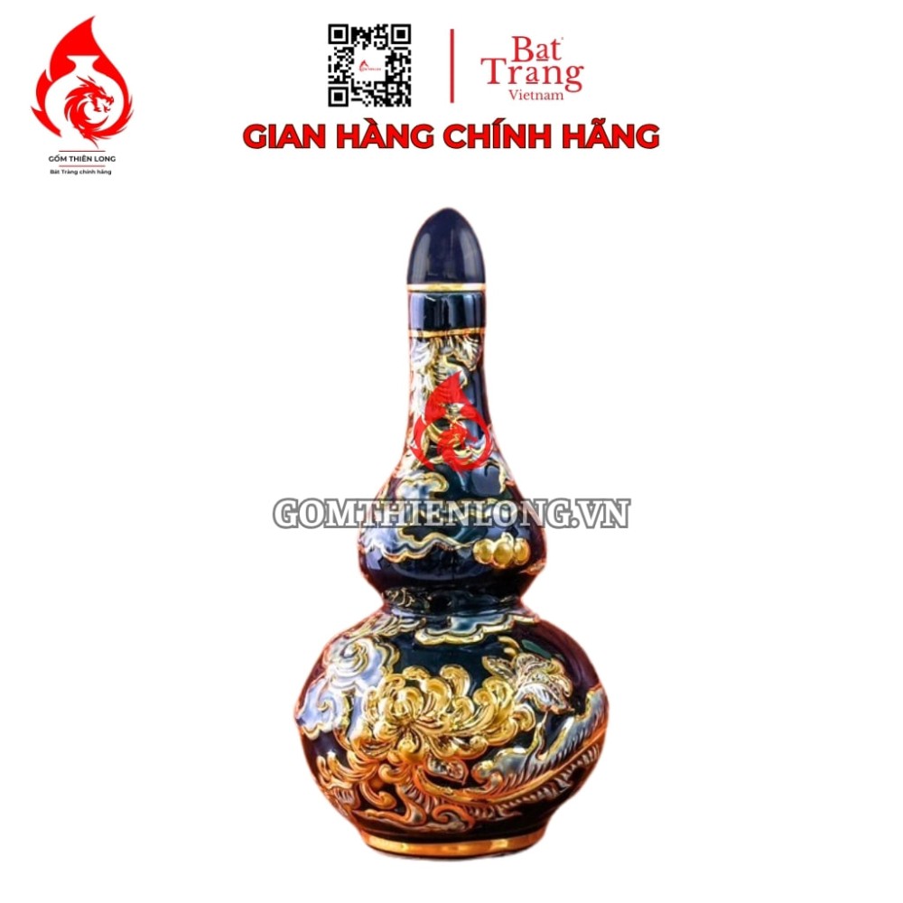 Men xanh tím coban vẽ vàng hoa sen: Nậm rượu được phủ men xanh tím coban vẽ vàng hoa sen, mang vẻ đẹp sang trọng và tinh tế. Các sản phẩm sau khi trải qua 2 lần nung đến nhiệt độ 1200 độ C hoàn hảo nhất sẽ được người nghệ nhân lựa chọn vẽ vàng 24k lên sản phẩm và tiếp tục nung lần thứ 3 vô cùng công phu.