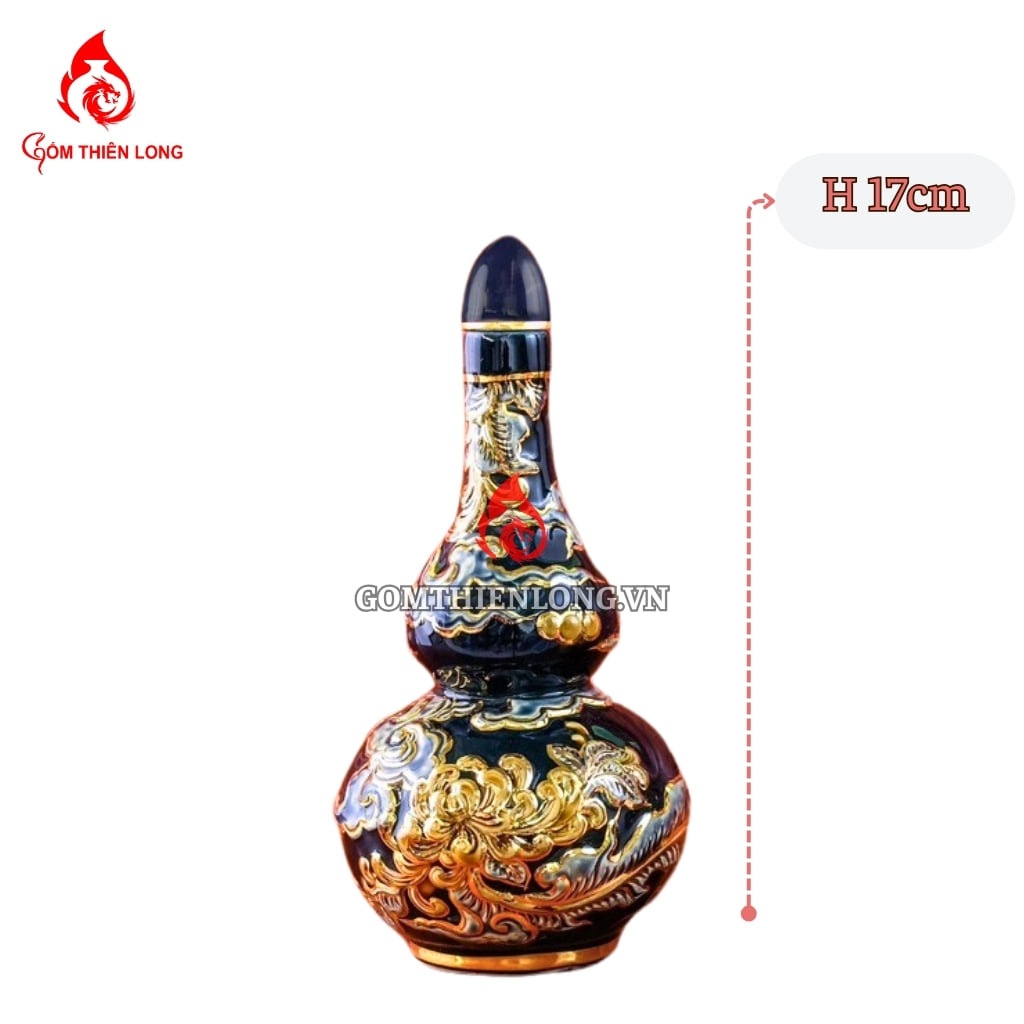 Thông tin sản phẩm Nậm Rượu Thờ Bát Tràng Men Xanh Tím Coban Vẽ Vàng 240152