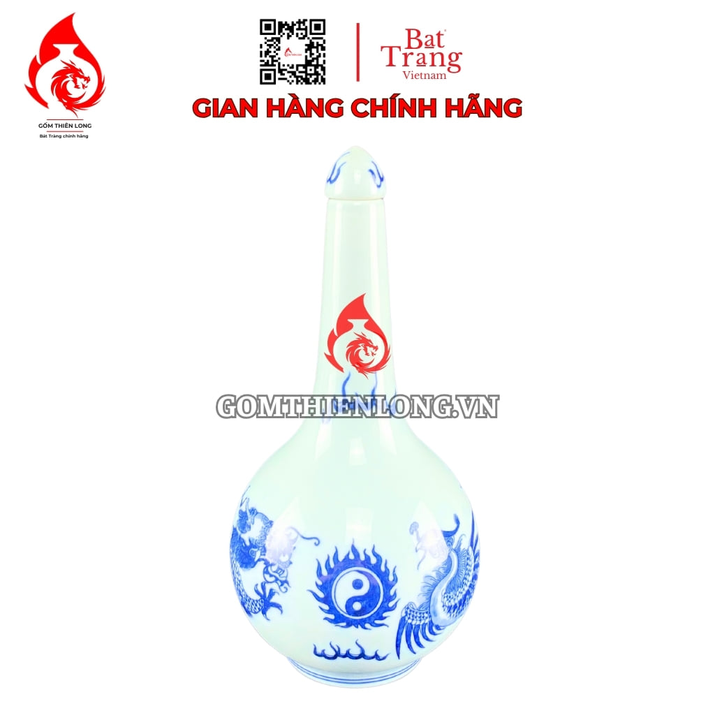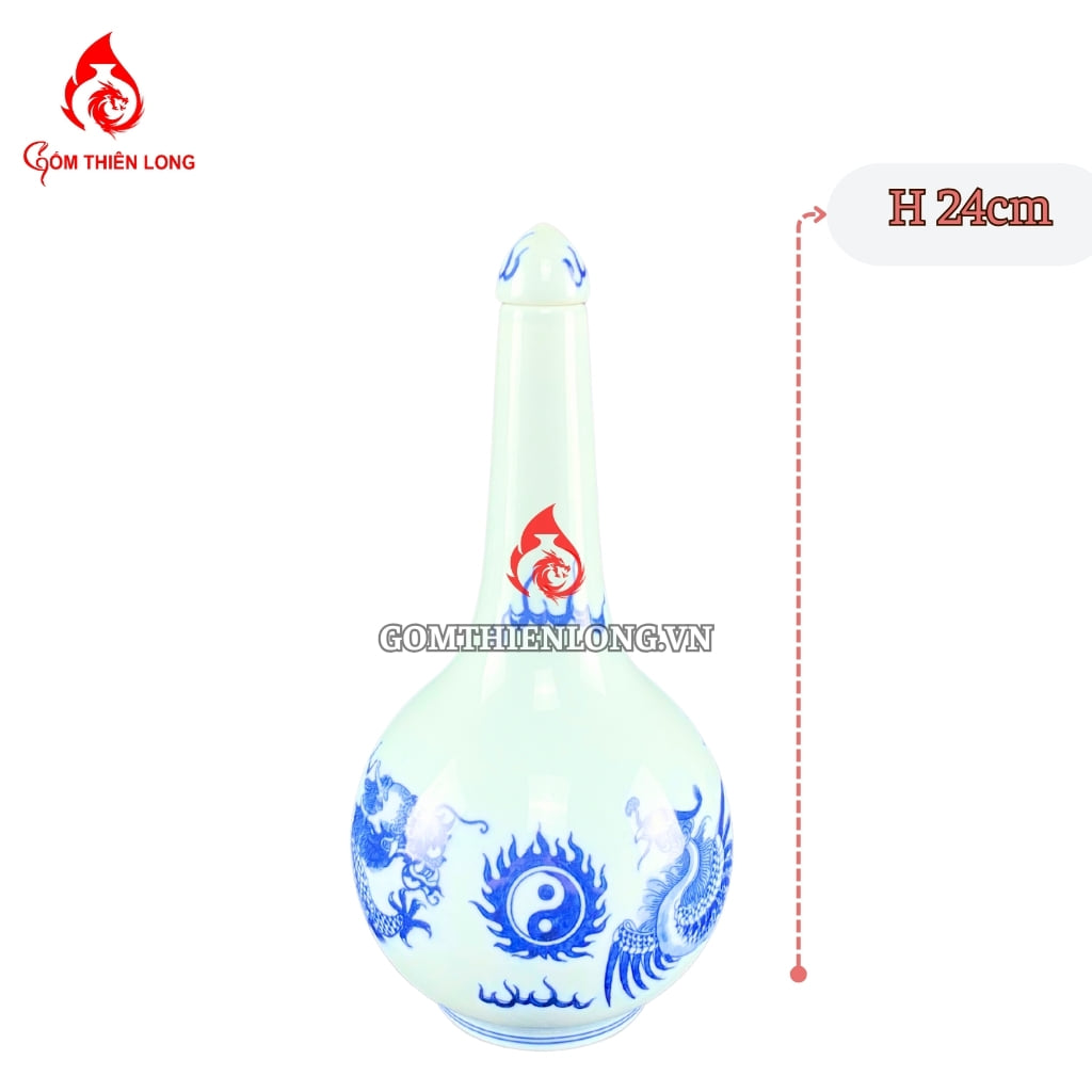 Nậm Rượu Thờ Men Lam Ngọc Vẽ Rồng Phượng - Nét Đẹp Linh Thiêng Cho Ban Thờ Gia Tiên