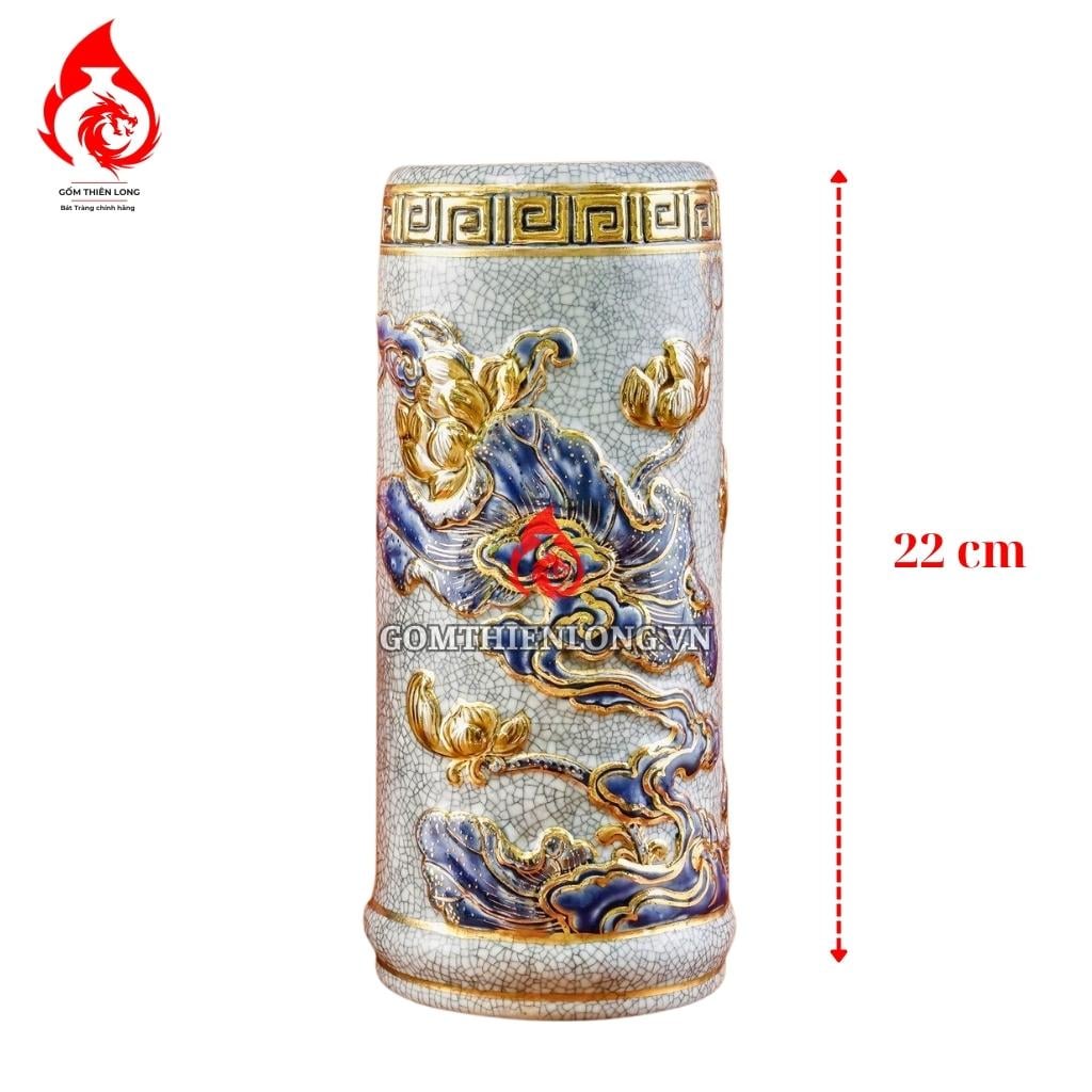 Ống Đựng Nhang Bằng Sứ Men Rạn Dát Vàng Long Cuốn Thủy 231097