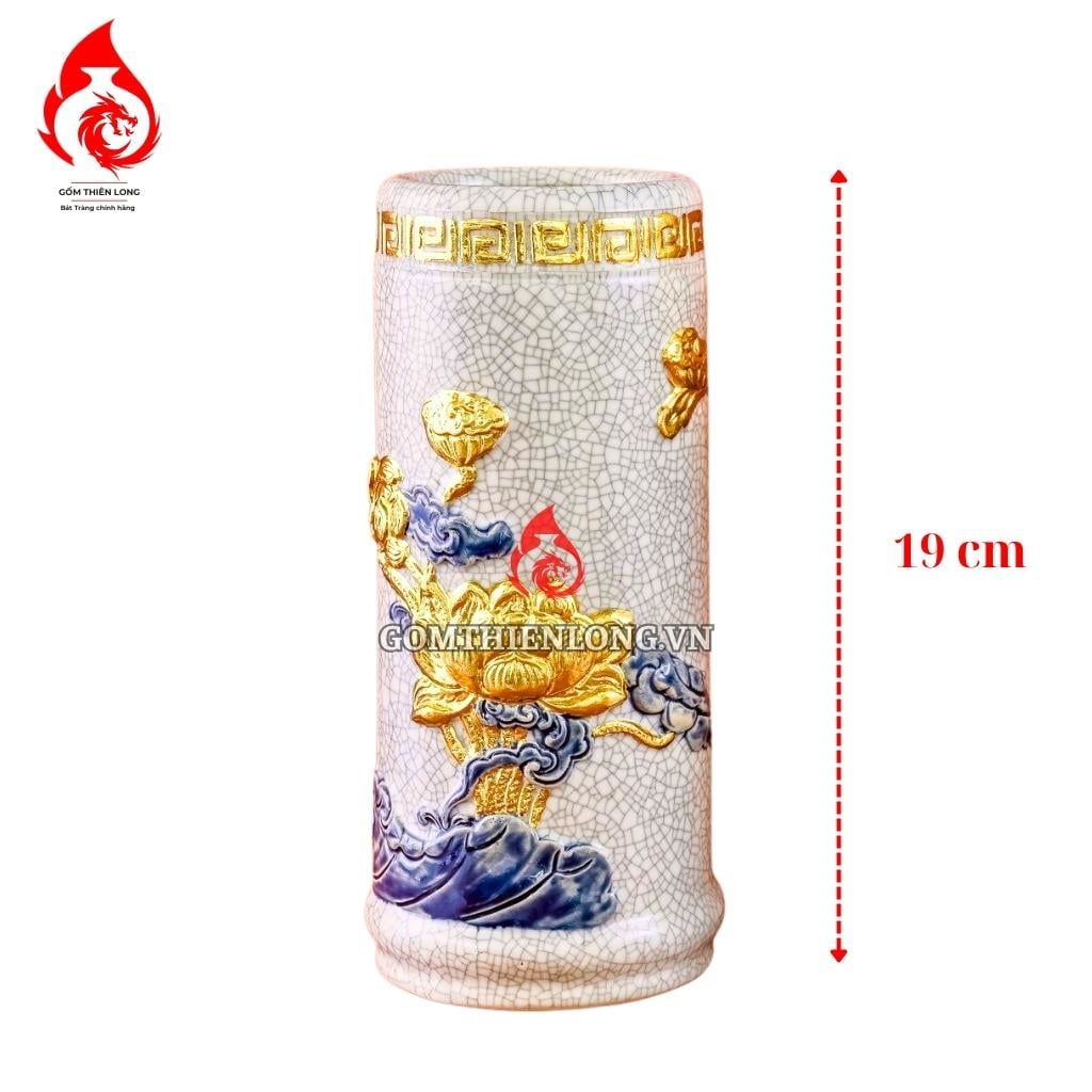 Ống Đựng Nhang Bằng Sứ Men Rạn Dát Vàng Hoa Sen 231098