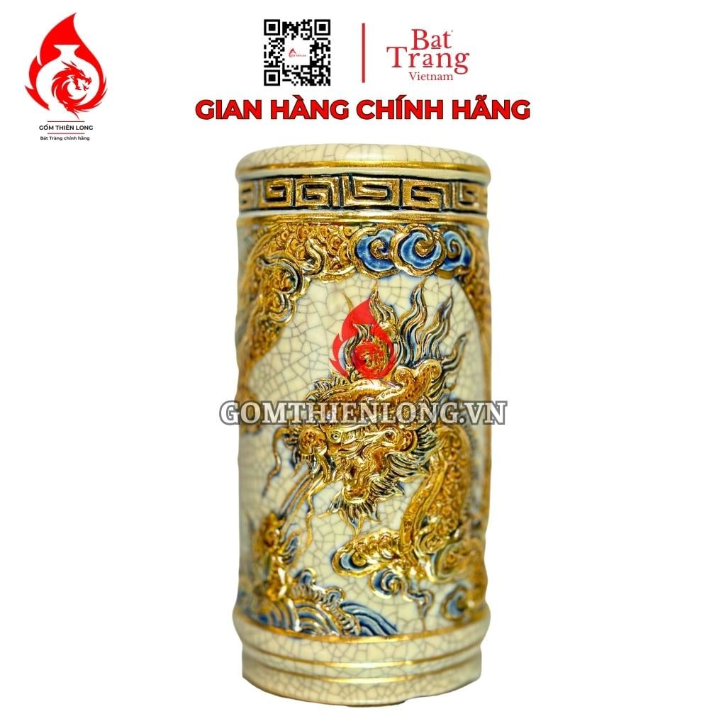 Thông tin sản phẩm Ống Đựng Nhang Bát Tràng Men Rạn Đắp Nổi Vẽ Vàng Long Cuốn Thủy 231081