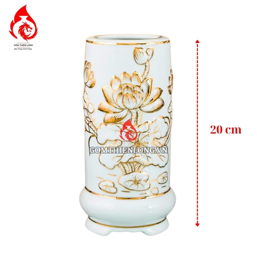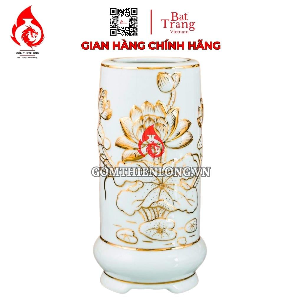 Ống Đựng Nhang Bát Tràng Men Trắng Vẽ Vàng Hoàng Kim Hoa Sen 231090