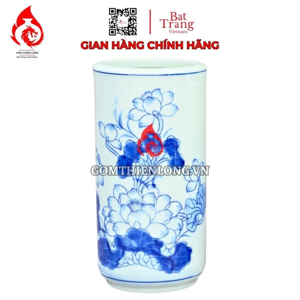 Thông tin sản phẩm Ống Đựng Nhang Bát Tràng Men Lam Vẽ Hoa Sen 231074