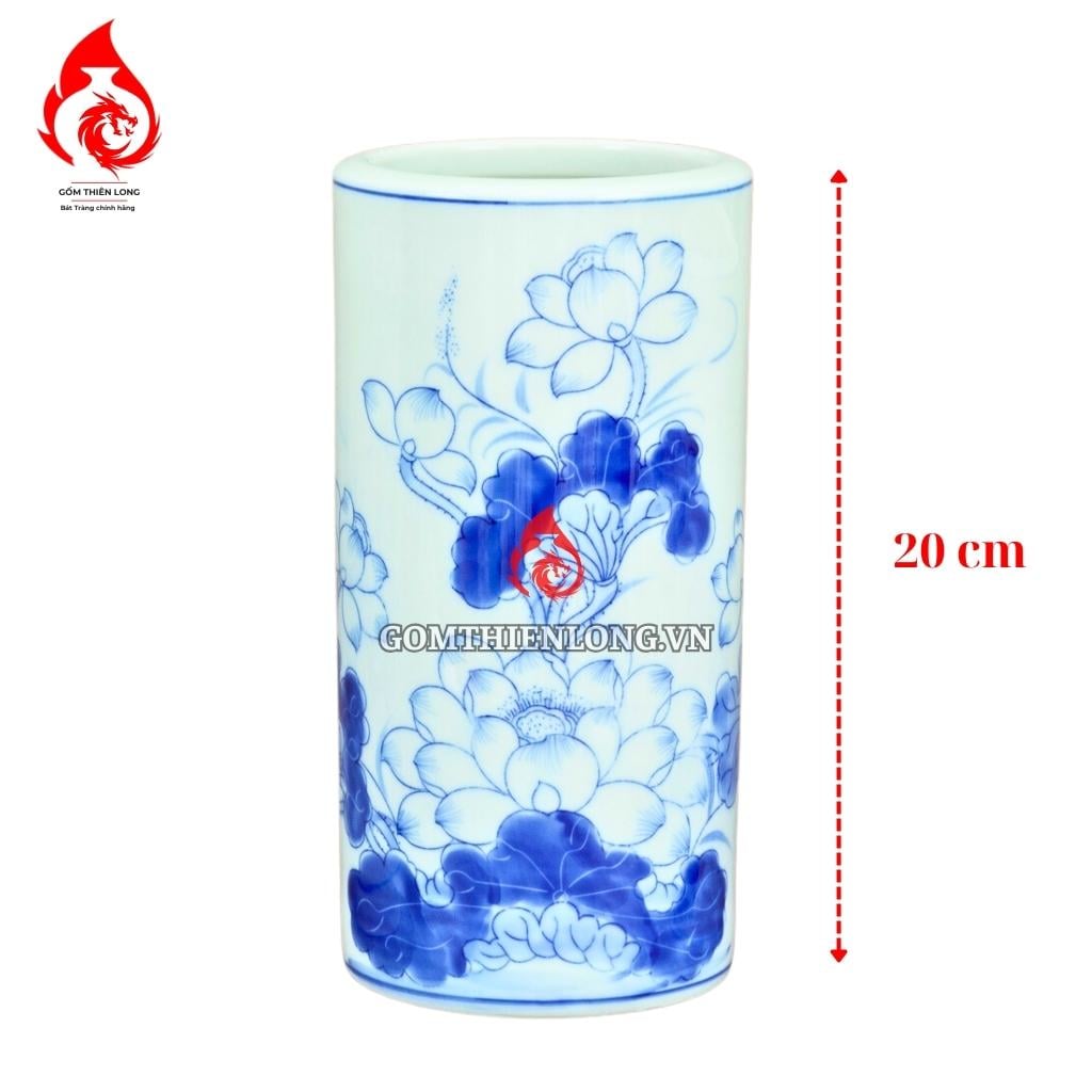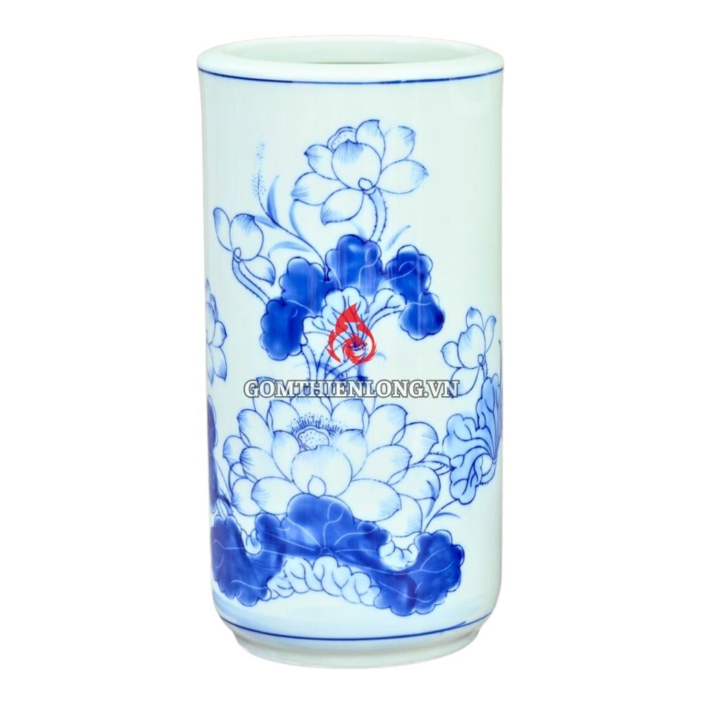 Ống Đựng Nhang Bát Tràng Men Lam Vẽ Hoa Sen 231074