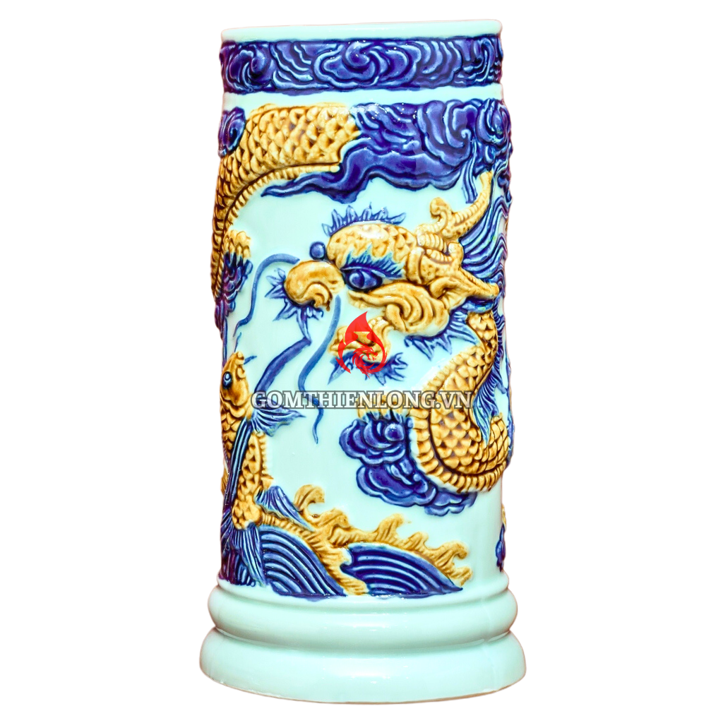 Ống đựng nhang men ngọc đắp nổi Gốm Bát Tràng Thiên Long giá tốt - hàng chính gốc Bát Tràng